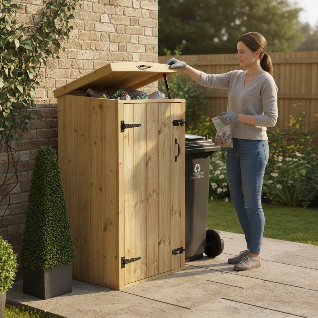 Disguise unsightly wheelie bins with this Premium Single Wheelie Bin Store. Handmade by skilled craftsmen, this attractive store is manufactured from tanalised timber with a 10-year guarantee against rot.