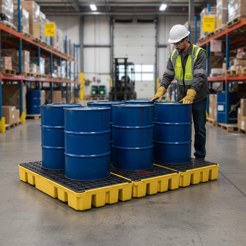 The Premium Heavy Duty Workfloor is designed for the safe indoor storage of 6 x 205 litre drums, ensuring compliance with the Oil Storage Regulations 2001. It effectively catches and contains leaks, drips, or spills, making it a reliable solution for drum storage in various industrial settings.