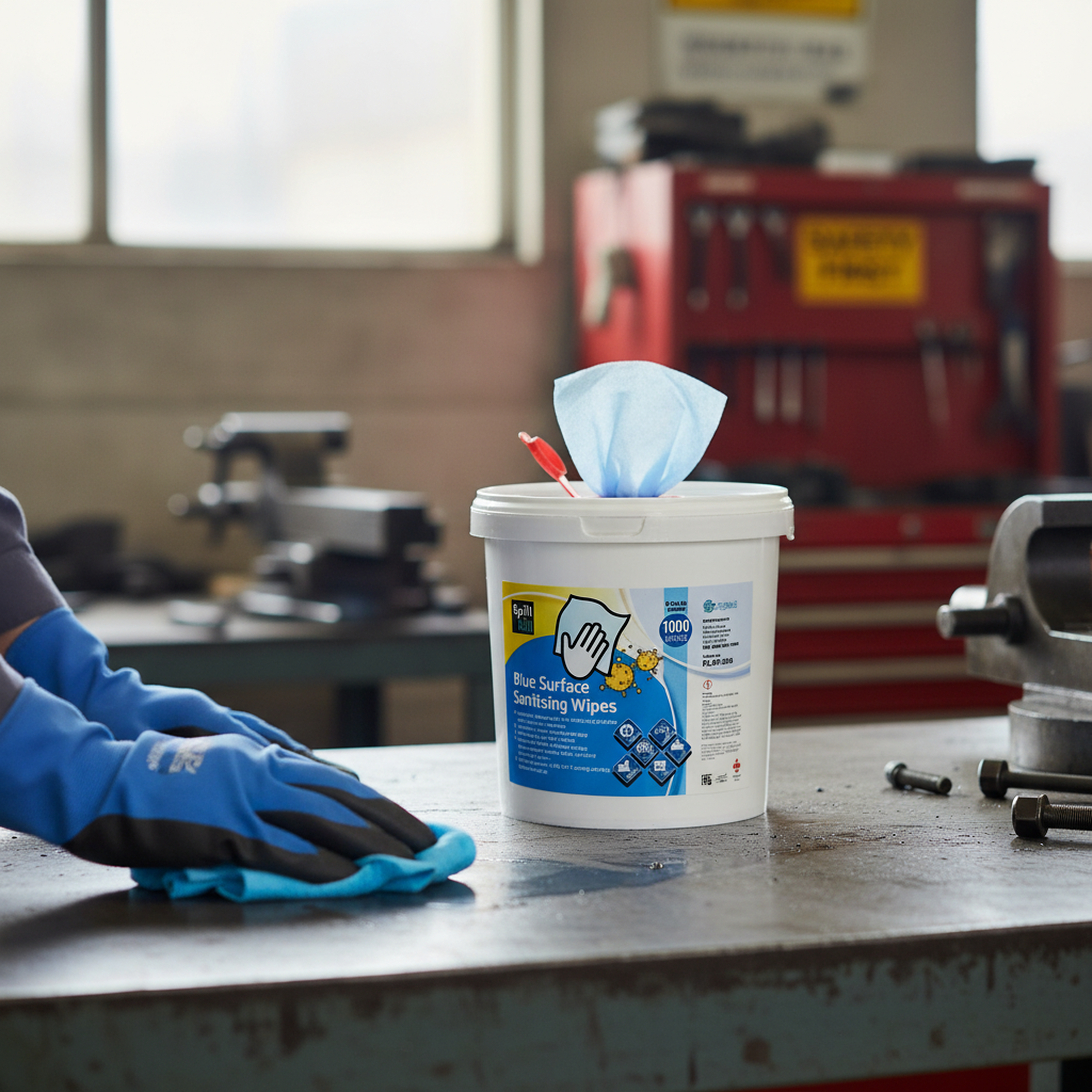 Simply pull out one wipe from the tub and use it to clean surfaces or hands. Ensure the surface remains wet for the required contact time to achieve effective sanitisation.