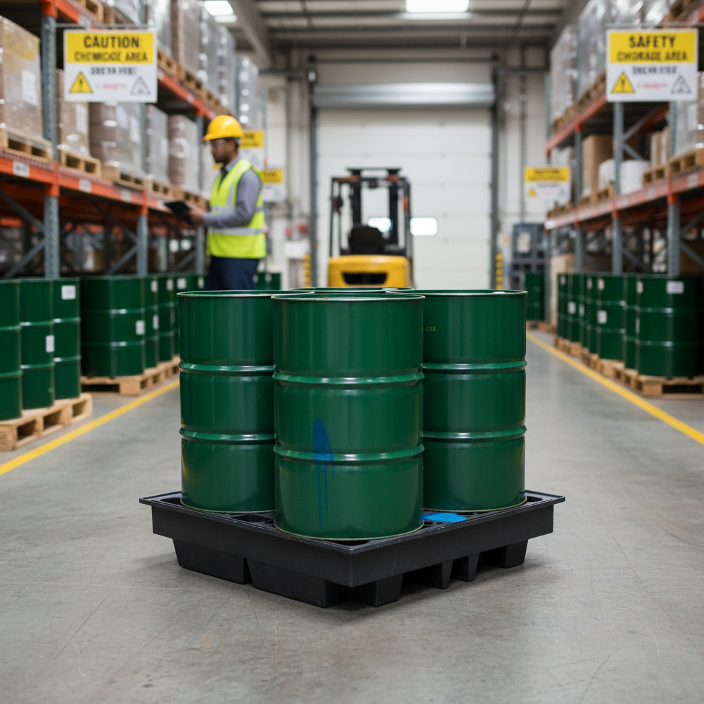 Premium Heavy Duty 4 Drum Spill Pallet for Outdoor Storage of 205 Litre Drums - Chemical Resistant and UV Stabilised