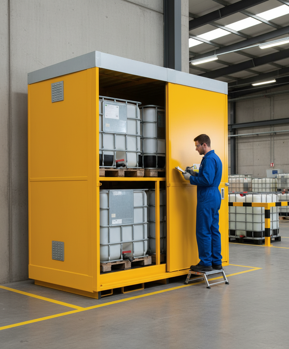 - Stores 16 x 205 litre drums or 4 x 1000 litre IBCs