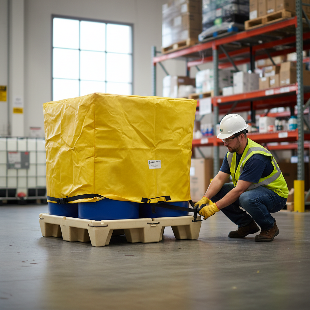 Premium Tarp Cover for 2 Drum Spill Pallet - Weather-Resistant, Chemically Resistant Fabric with Long Life-Span