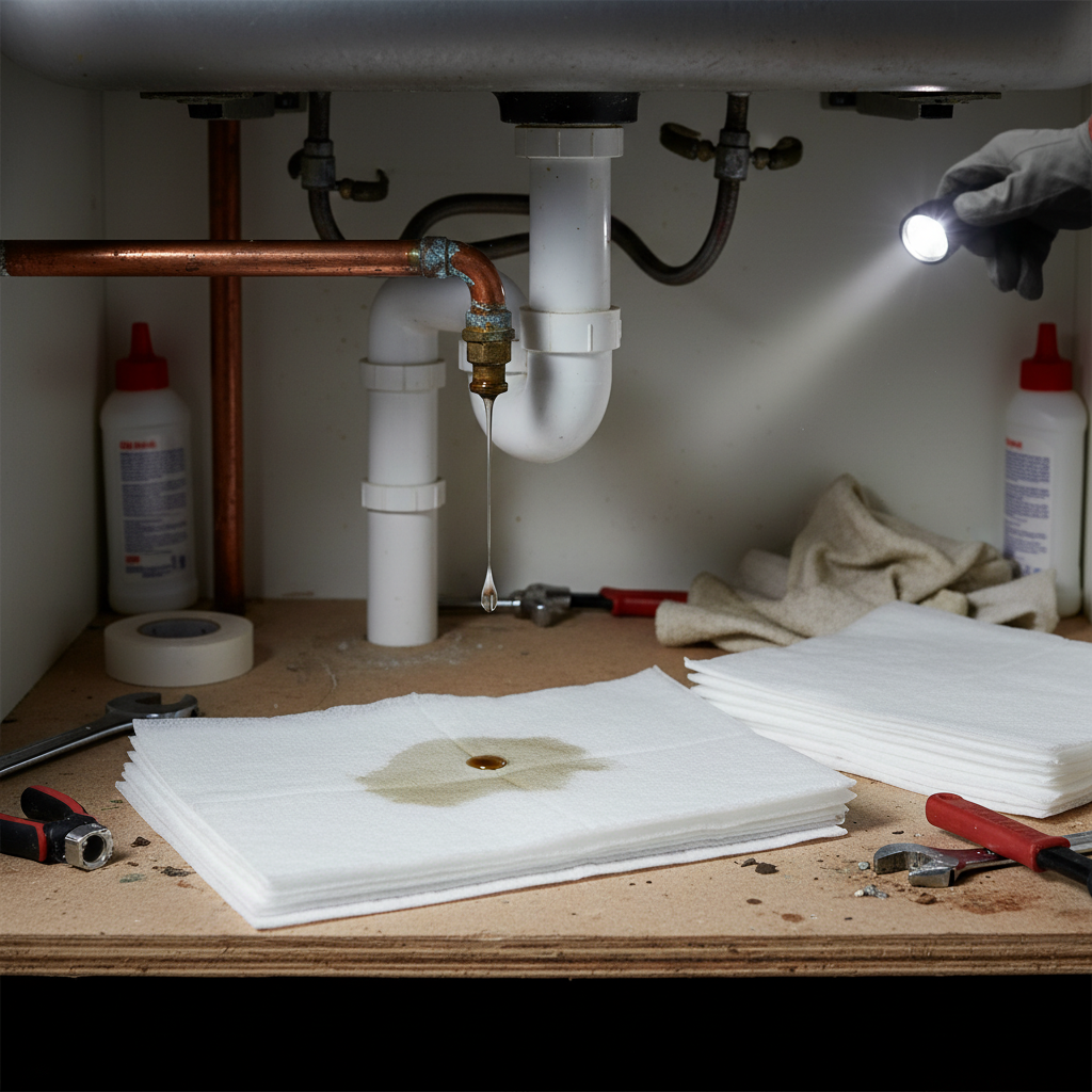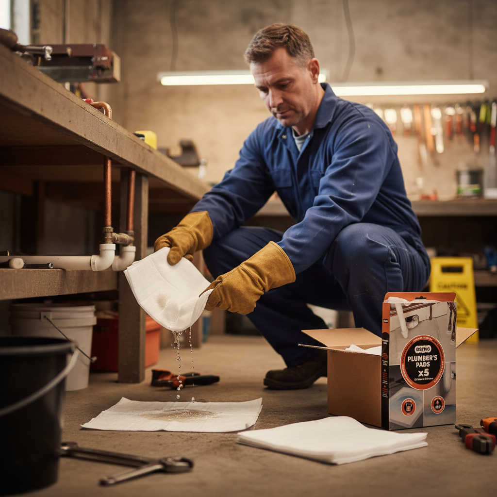 The Premium Plumber's Pad is specifically designed to protect carpets and furnishings from overhead leaks. Manufactured in the UK from super absorbent polymers, this innovative pad transforms liquid into gel, effectively eliminating drips and cross-contamination. Its compact size allows for use in areas with limited space, and it can remain in position as a preventative measure against slow leaks.
