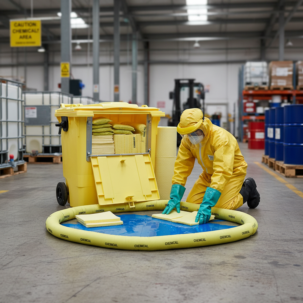 The Premium 1200 Litre Chemical Spill Kit is designed to effectively manage industrial-sized spills of aggressive or hazardous fluids, including acids and alkalis. It is suitable for use in warehouses and factories, ensuring safety in environments where spills can occur.