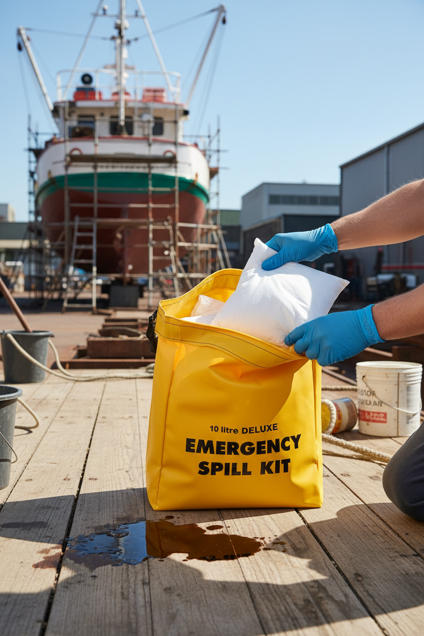Ideal for quick response to oil spills, this spill kit should be kept in accessible locations around marinas, harbors, and onboard boats. Ensure that the kit is checked regularly to maintain readiness.