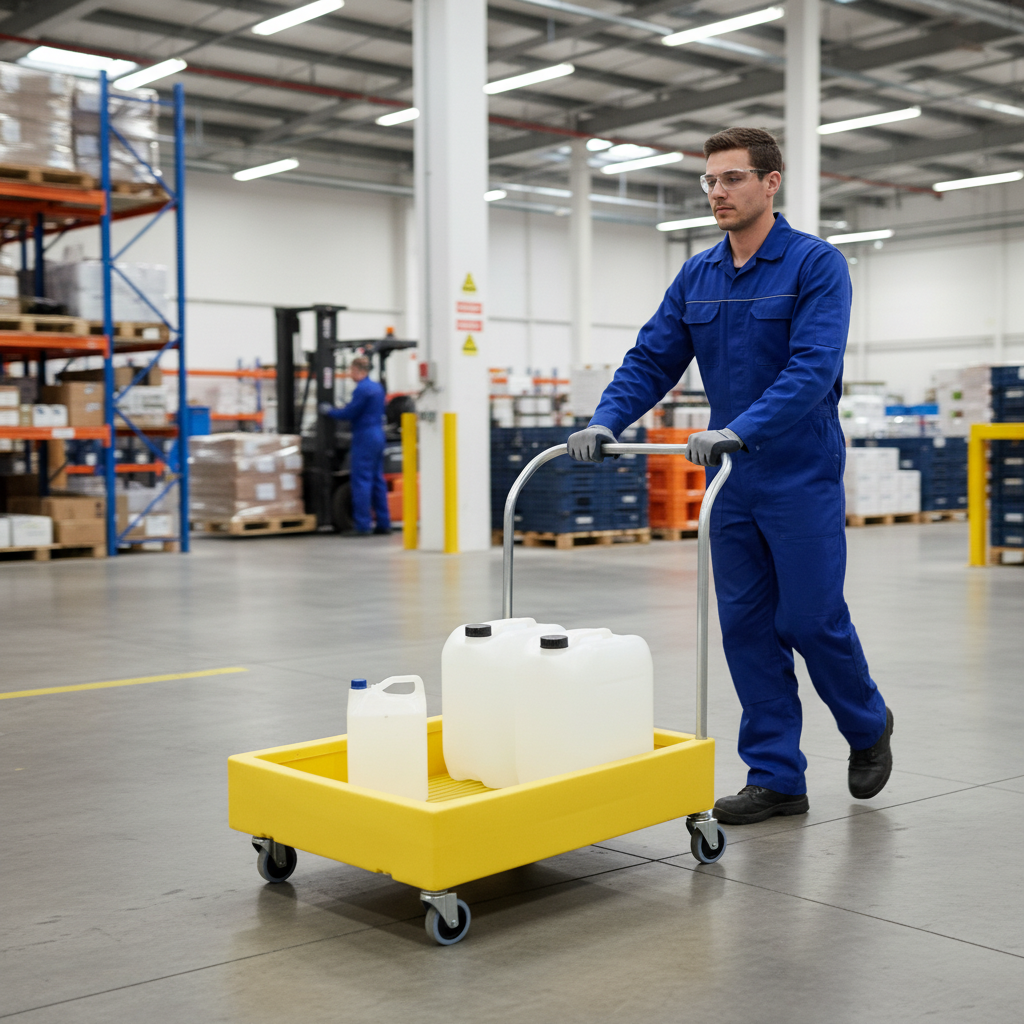 This trolley is constructed from chemical-resistant polyethylene, ensuring durability and safety when transporting hazardous liquids. Its bunded design prevents spills, providing an added layer of security. The lightweight nature of this trolley means that it can be easily moved while fully loaded, making it ideal for workplaces that require frequent relocation of liquid drums.