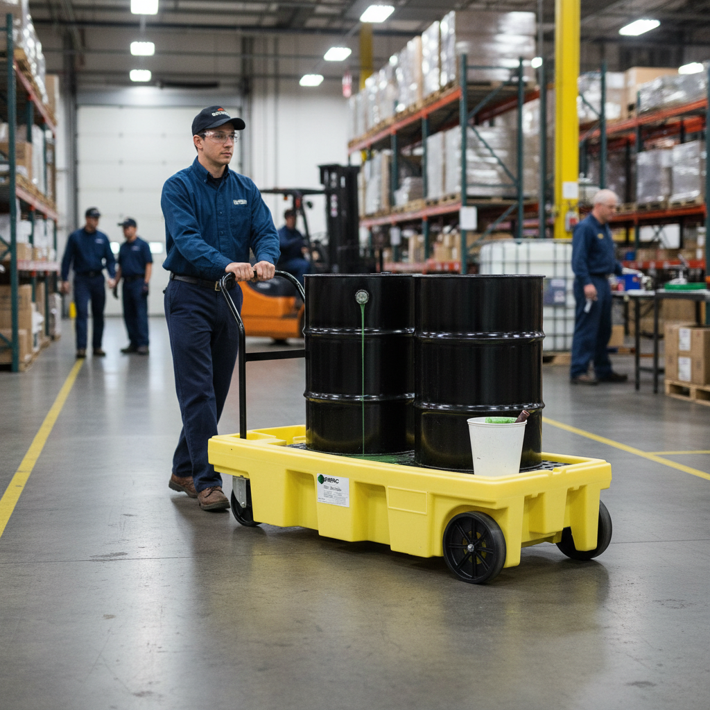 Premium Poly Spillcart for Safe Transportation of Drums and Tools with Ergonomic Handle and Removable Grid