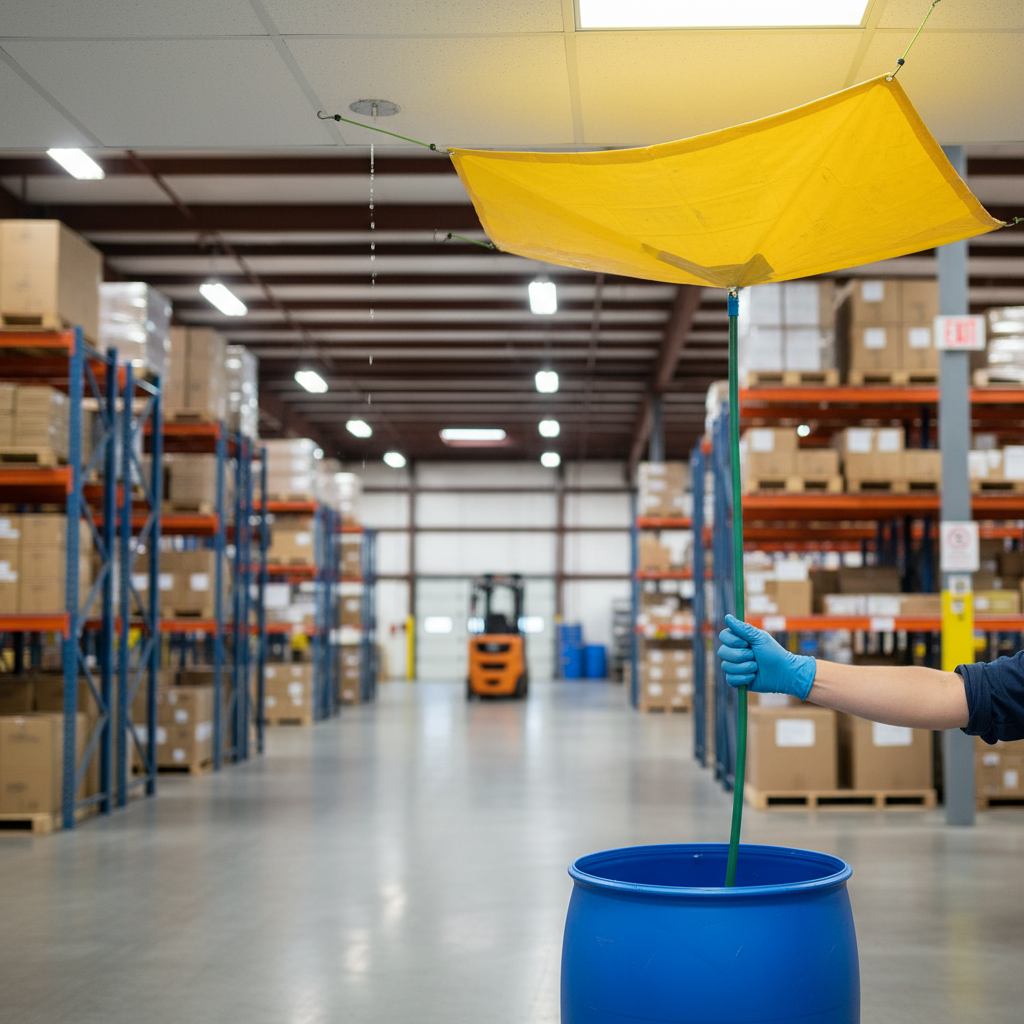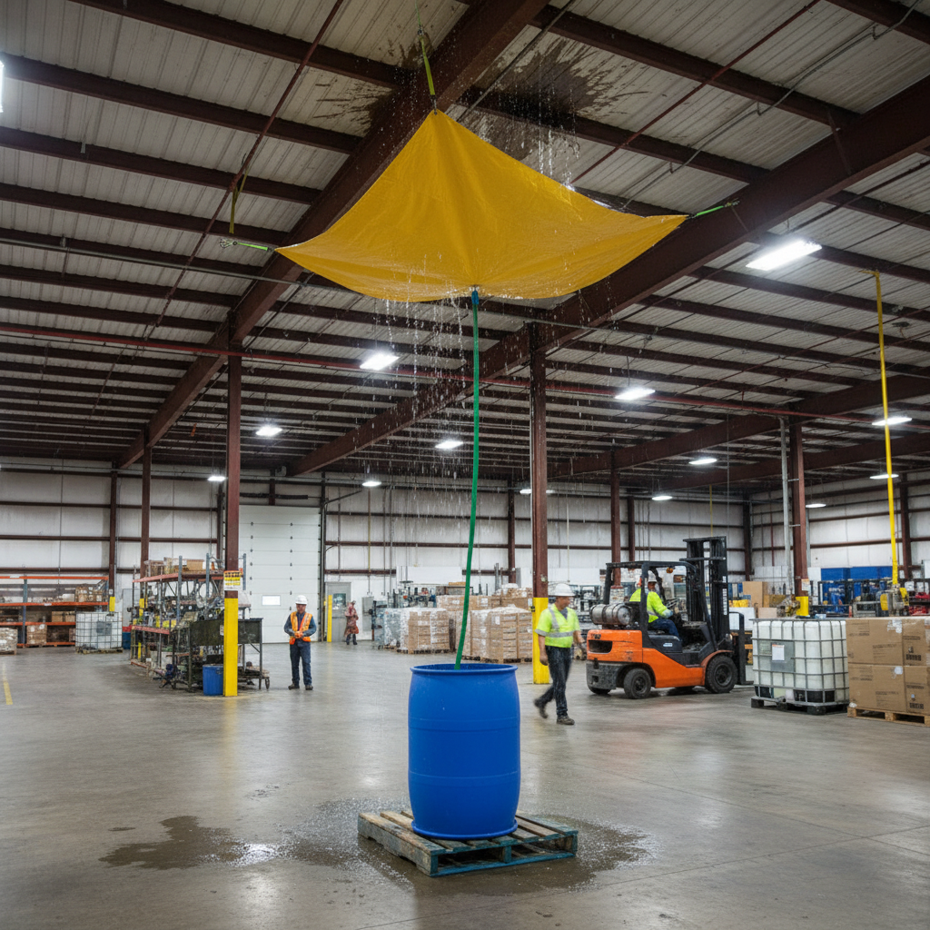The Premium Roof Drip Diverter is designed to effectively catch roof leaks, ensuring that water is diverted away from valuable office equipment to the correct drainage point. Made from a large, vinyl-coated fabric, this diverter is lightweight and easy to set up, making it an essential tool for any office leak emergency.