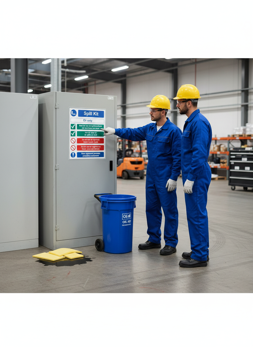 Position the sign at the designated location of your Spill Kit to ensure it is easily visible to all personnel.