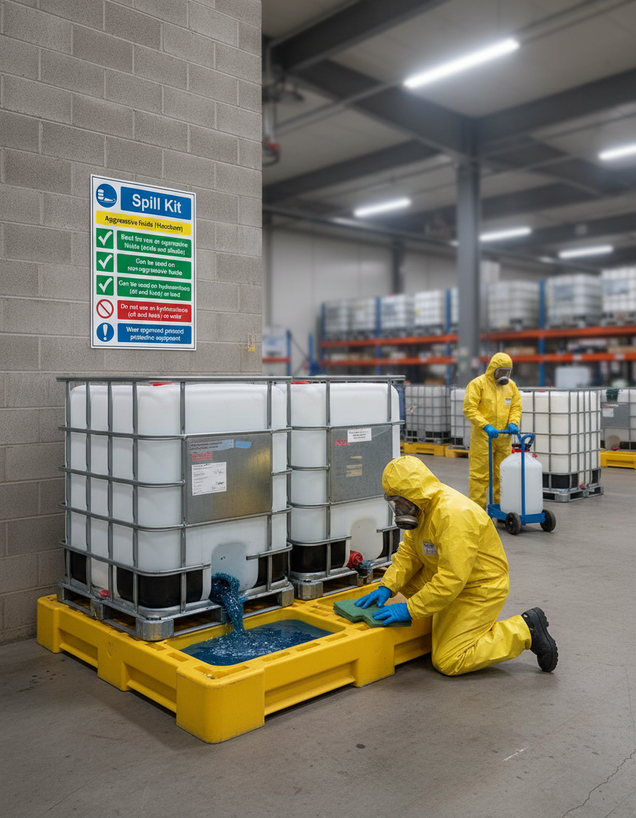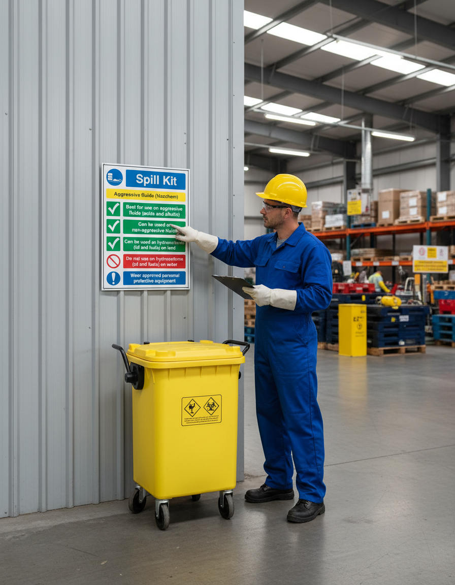 Premium Spill Kit Sign for Aggressive Fluids - High Gloss Finish, Self-Adhesive Vinyl or Rigid Plastic, Brightly Coloured and Informative Design