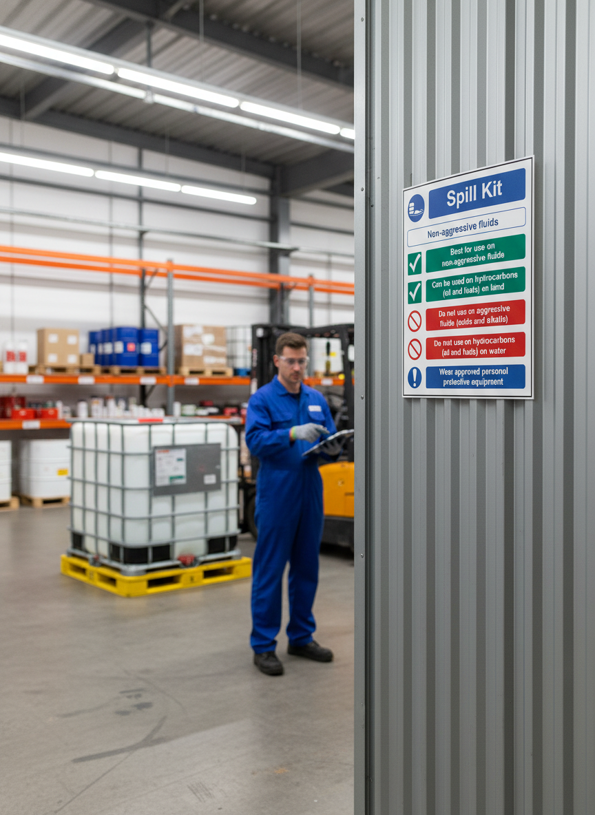 A: A Spill Kit Sign provides clear instructions on the use of non-aggressive fluid spill kits, ensuring safety and compliance in the workplace.