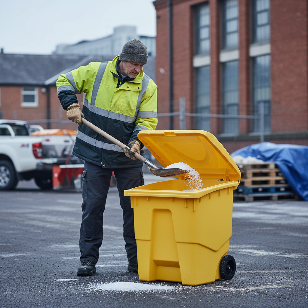 This Premium Heavy Duty 130 Litre Grit Bin is designed for the secure storage of grit, salt, sand, and various other materials. Constructed from tough, watertight polyethylene, this grit bin ensures that your materials are protected from the elements, making it ideal for both indoor and outdoor use.