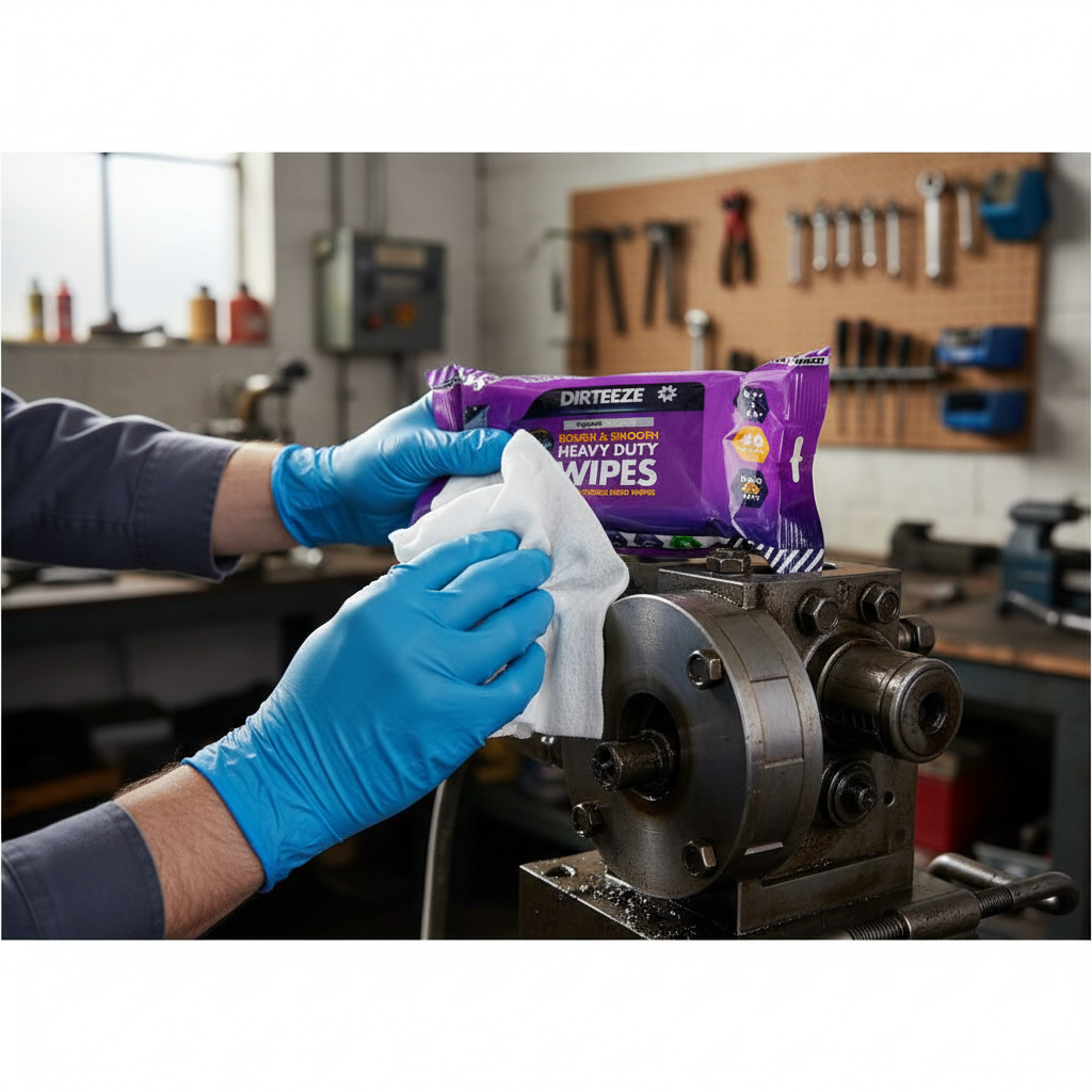 Premium Heavy Duty Antibacterial Wipes are pre-moistened wipes designed for effective cleaning and sanitization. Featuring a unique microbead surface, these wipes enhance cleaning power, making them perfect for use on various surfaces including hands, tools, and machinery.
