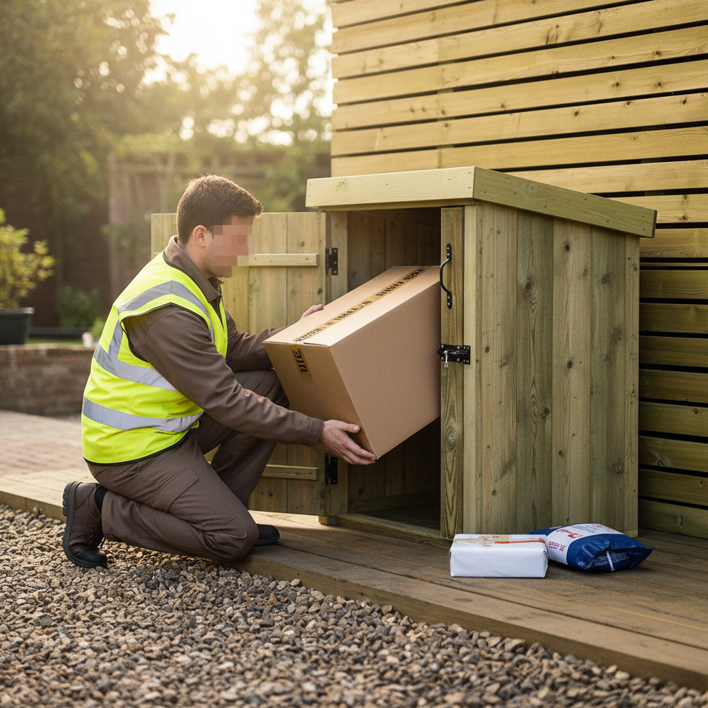 This Premium Parcel Store is designed for durability and functionality, providing a secure space for parcel deliveries. It is crafted from high-quality tanalised timber, ensuring resistance to rot and decay, which is backed by a 10-year guarantee.
