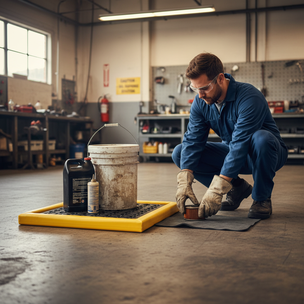 This Poly-Spill Pad is designed for indoor use with hazardous liquids.