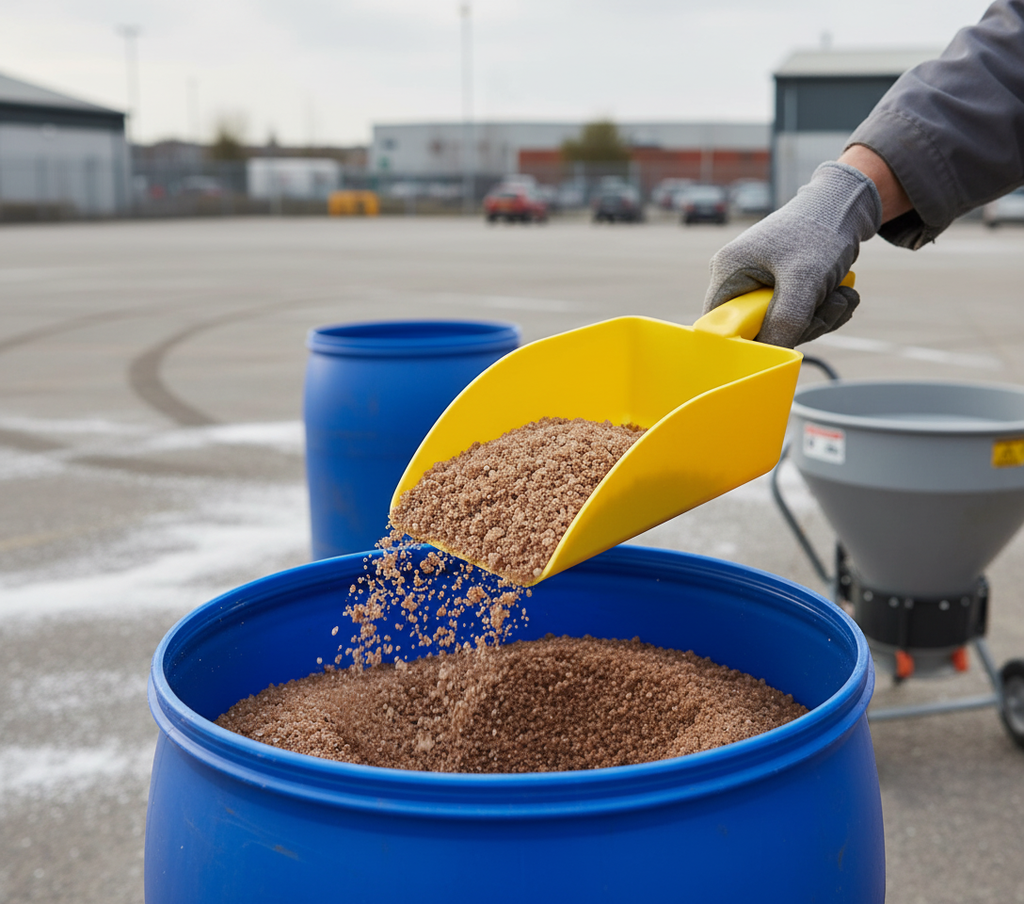 Premium Plastic Salt Scoop with Ergonomic Grip for Efficient Grit Spreading in Small to Medium Areas